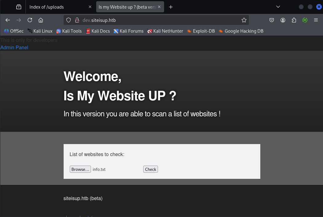 www-data@updown:/home/developer/dev$ ./siteisup